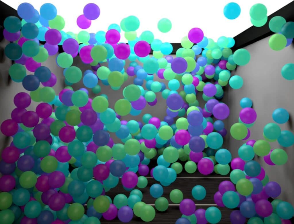 To suit the tight footprint of the space and ensure guests don’t cast shadows as they enter or exit the elevator, the projection is powered by an ultra-short-throw projector. The visual content blends abstract movement and colorful scenes with animations that play with the geometry of the room to create false depth, creating a quiet transition between the vertical journey and the rooftop experience. It’s a refined, unexpected detail that creates a memorable wow moment at the top floor.